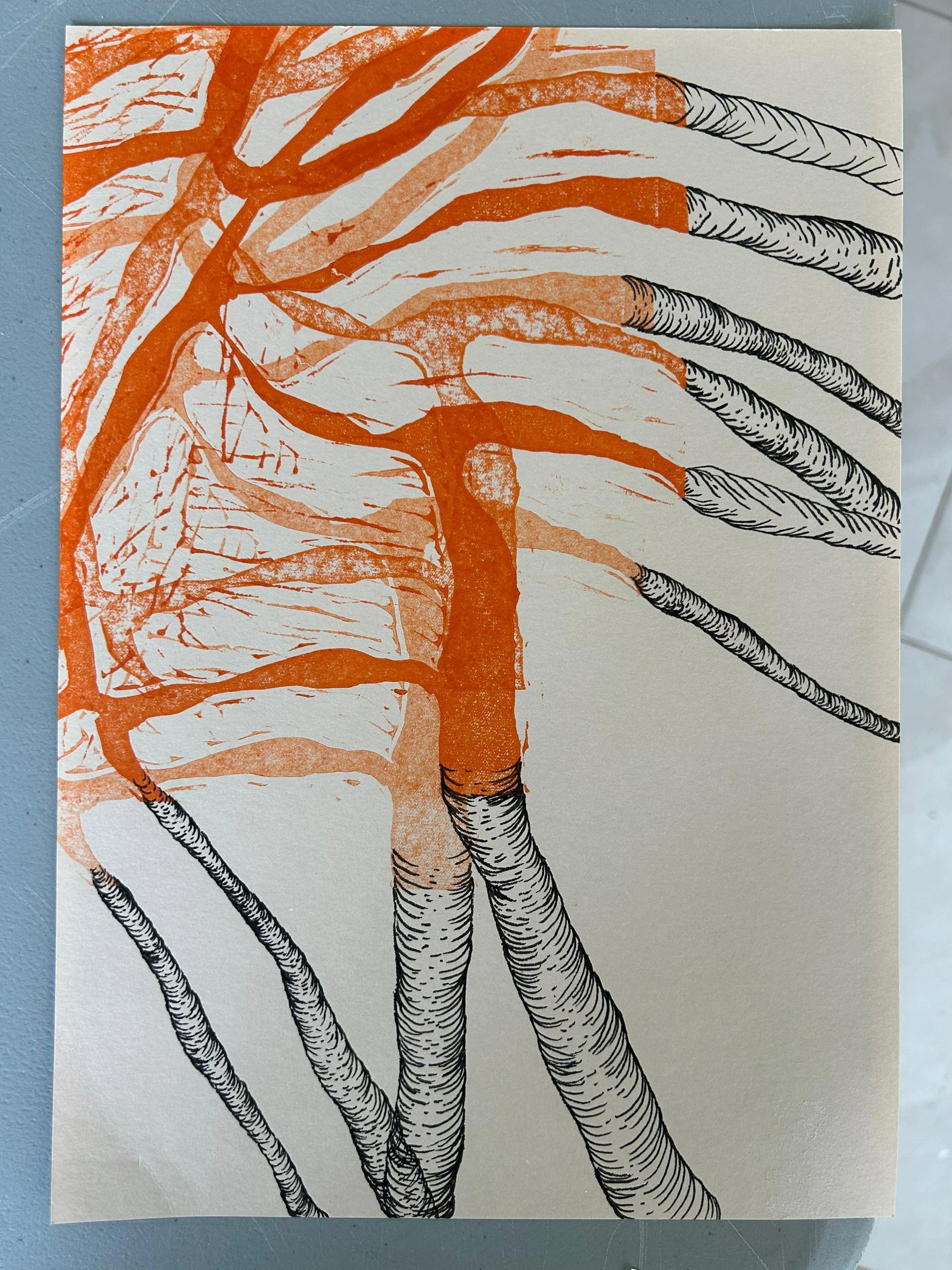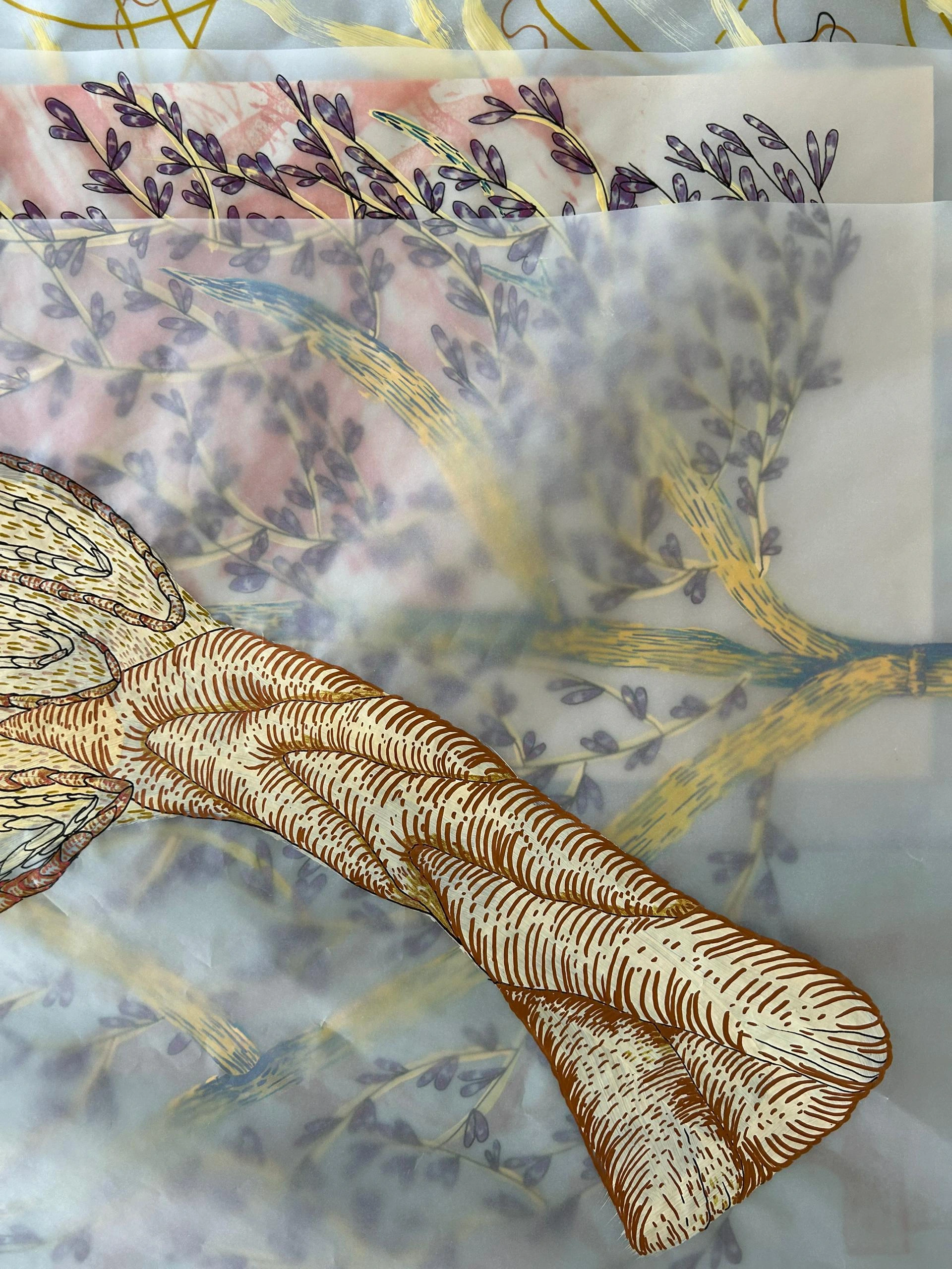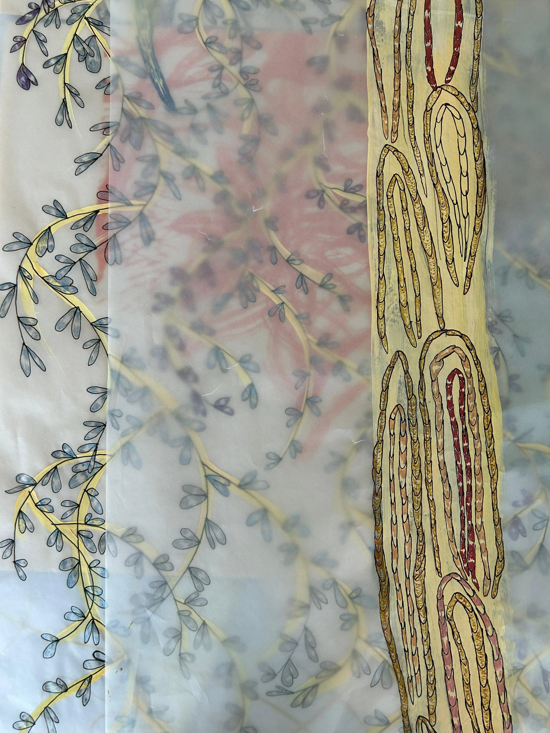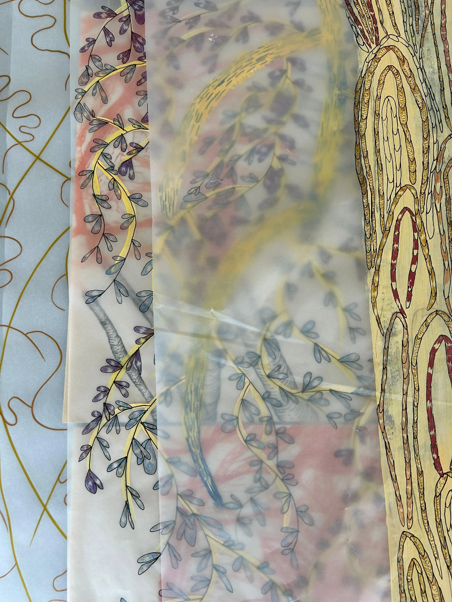 Kola nov? est une poésie du vivant qui fait dialoguer science et création, où l’invisible de la forêt de Suza se révèle en strates, en couleurs et en formes texturées. Une nouvelle espèce de plante de Kola, potentiellement endémique de la région de Grand Suza, s’impose comme motif central : à la fois spécimen de conservation et source créative, elle devient une matrice qui englobe et structure la densité entrelacée de ma rencontre avec cette forêt.